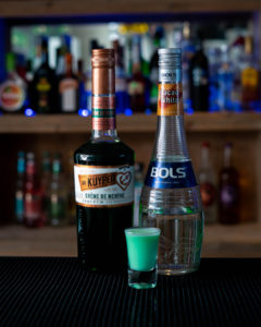 The Grasshopper shot is the embodiment of minty goodness. Its delightful blend of crème de menthe, a mint-flavored liqueur, and crème de cacao, a chocolate-flavored liqueur, creates a harmonious balance of flavors that’s both cool and indulgent. Each shot is like a refreshing mint-chocolate treat that invigorates the senses and leaves a lingering, minty freshness.